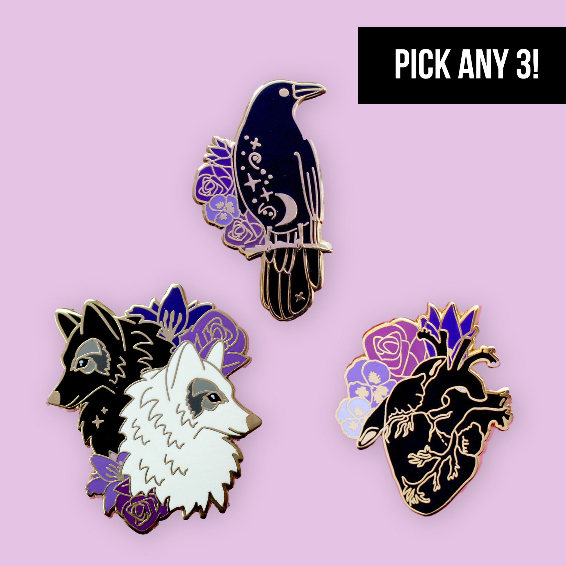 Grab three fabulous Art Deco themed enamel pins in a special bundle.