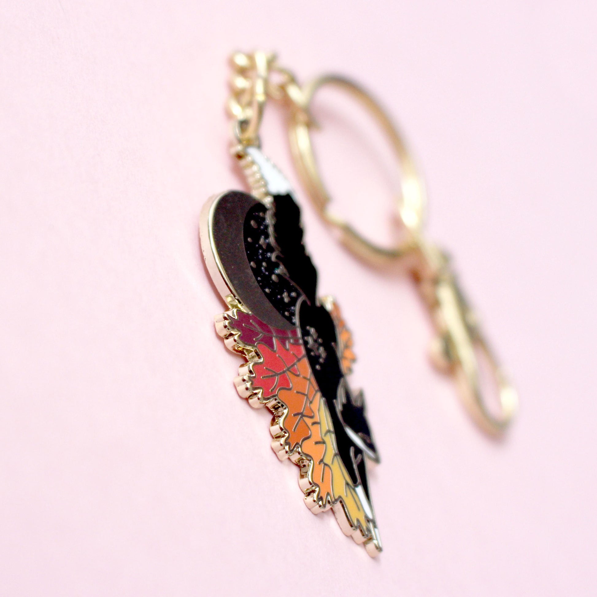 The Autumn Fox design is now available as a key chain! If you love the autumn season this fantastic Fall Fox is the key chain for you! It features a black fox jumping over a glittery moon, surrounded by vibrant autumnal leaves.