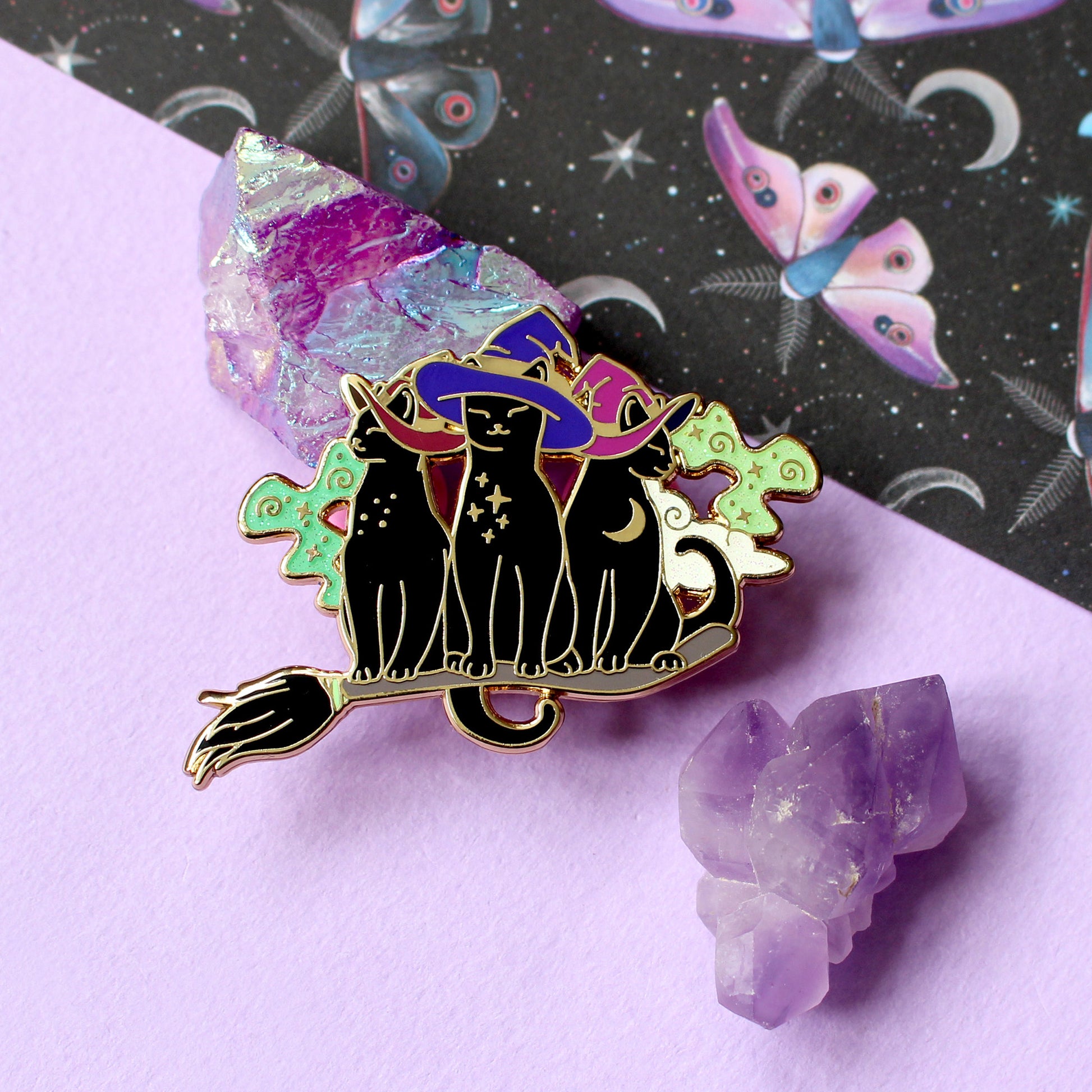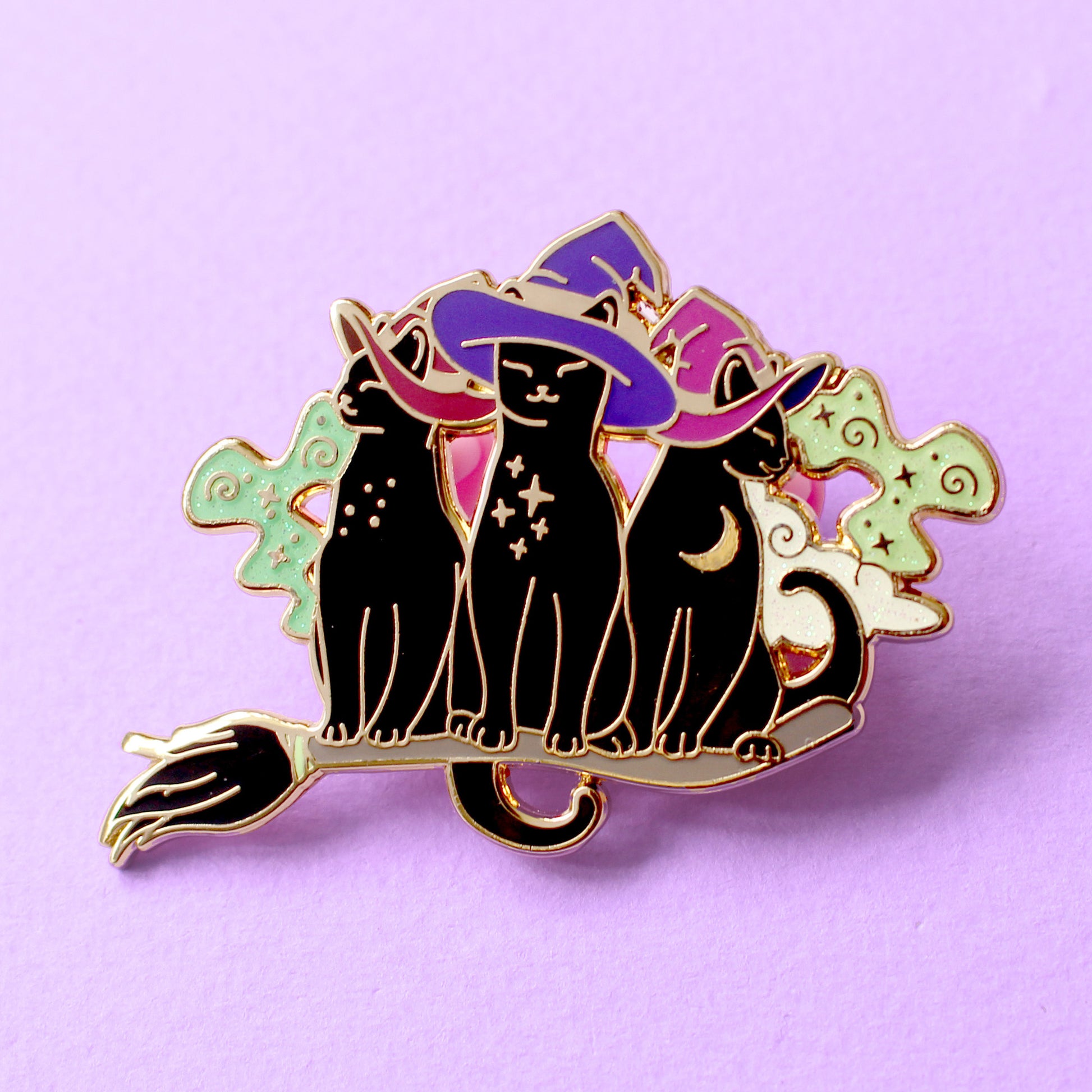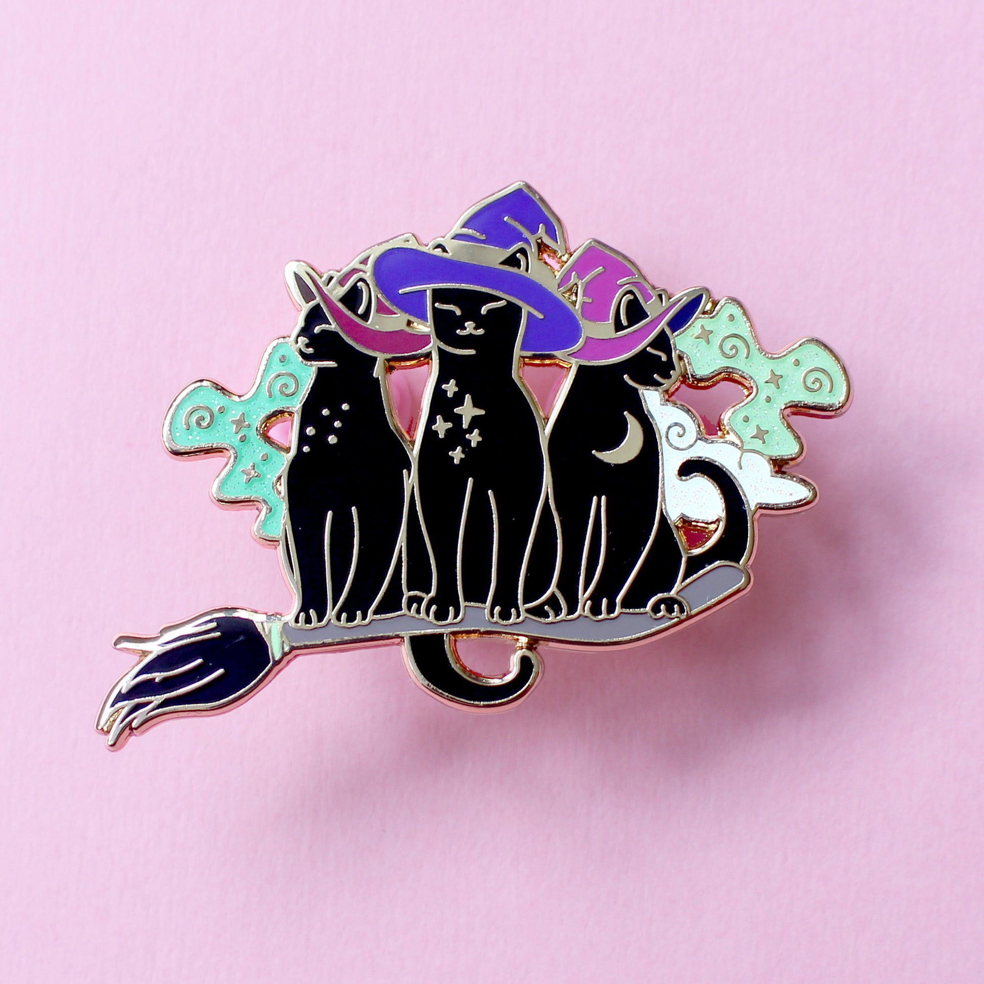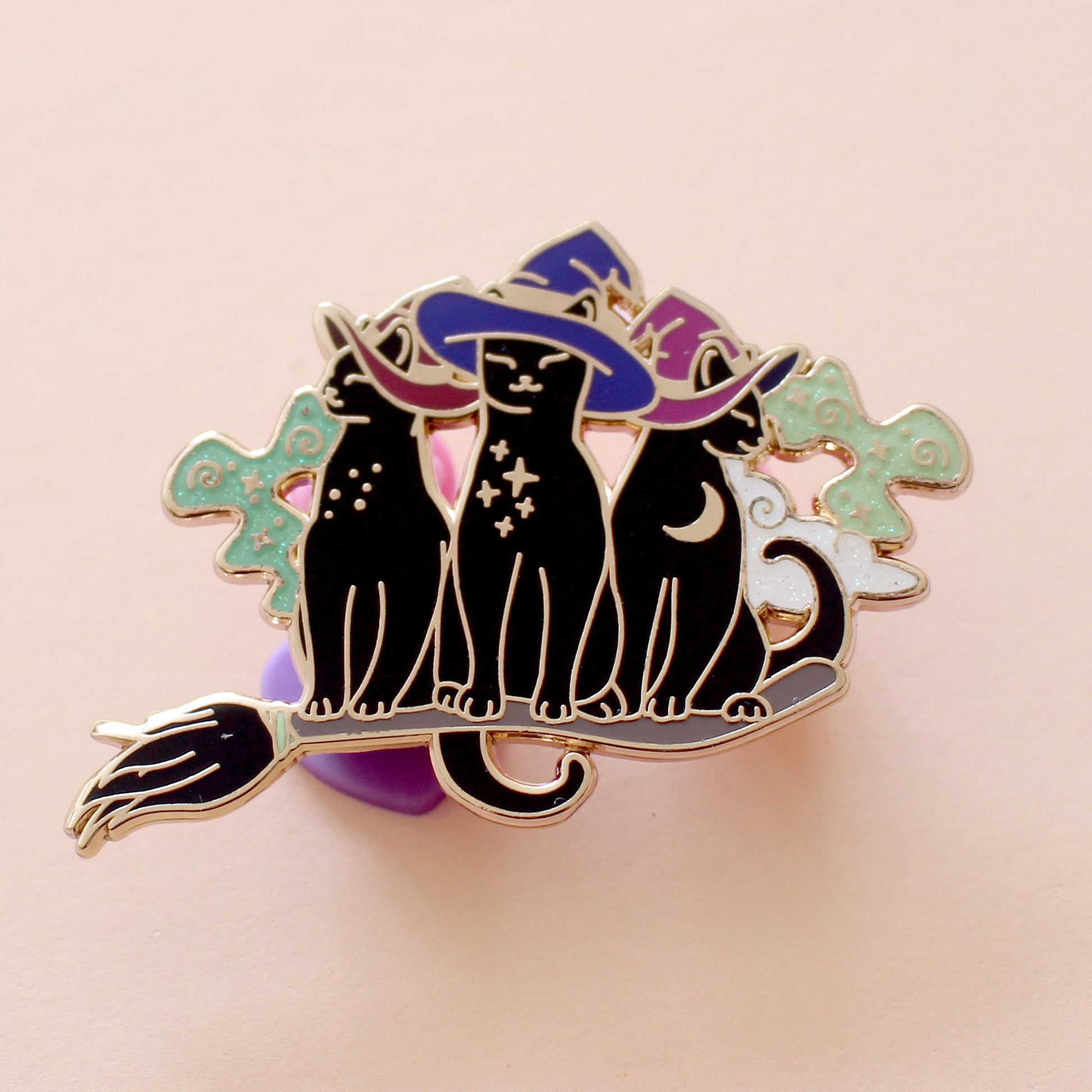 Broomstick Trio of Cats Enamel Pin – Halloween Collection