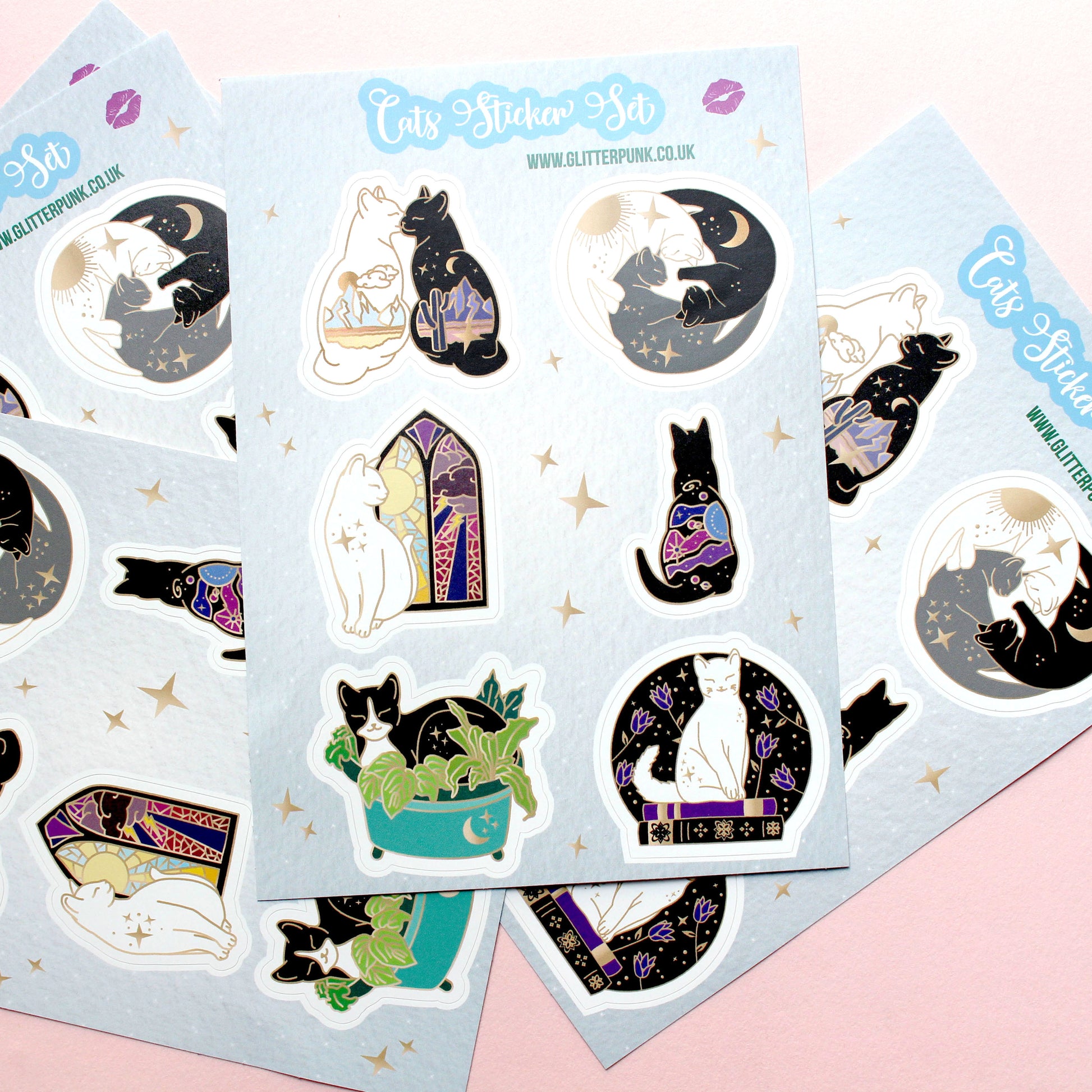 The latest cat-themed Glitter Punk designs are now available as a sticker sheet! Perfect for diaries, bullet journals, and anywhere else you can think of! The sheet is A6 size (148x105mm), and each of the stickers measure around 40mm or a little bigger.