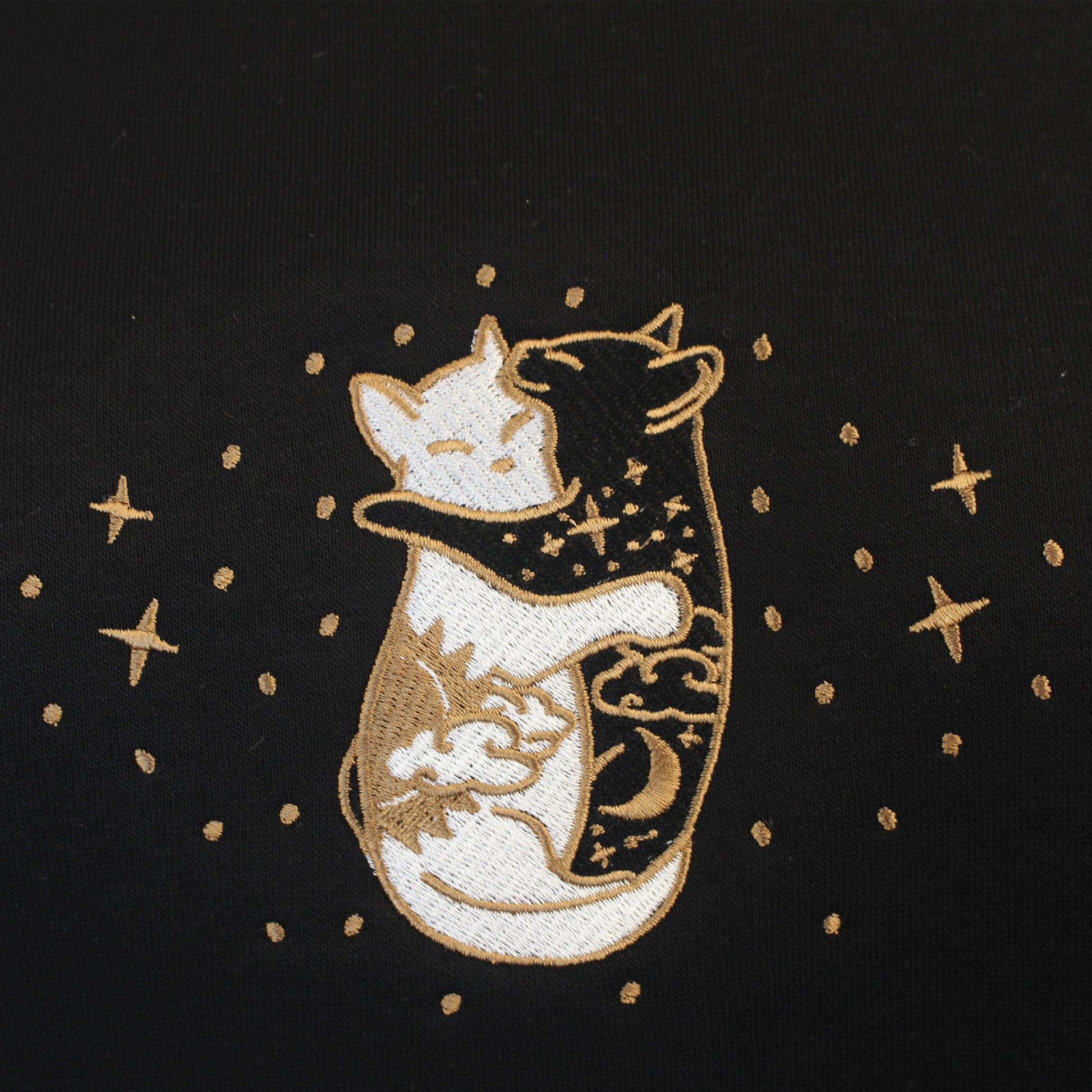 Women's Day & Night Hugging Cats Embroidered Sweatshirt