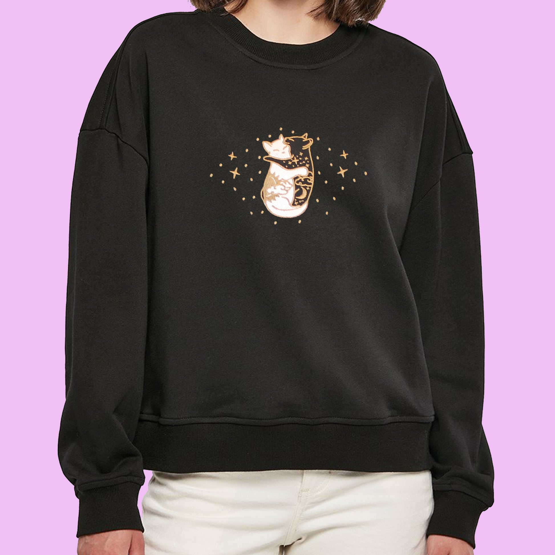 Show off your style with a Day & Night Hugging Cat Sweatshirt, featuring my snuggly cat pair!