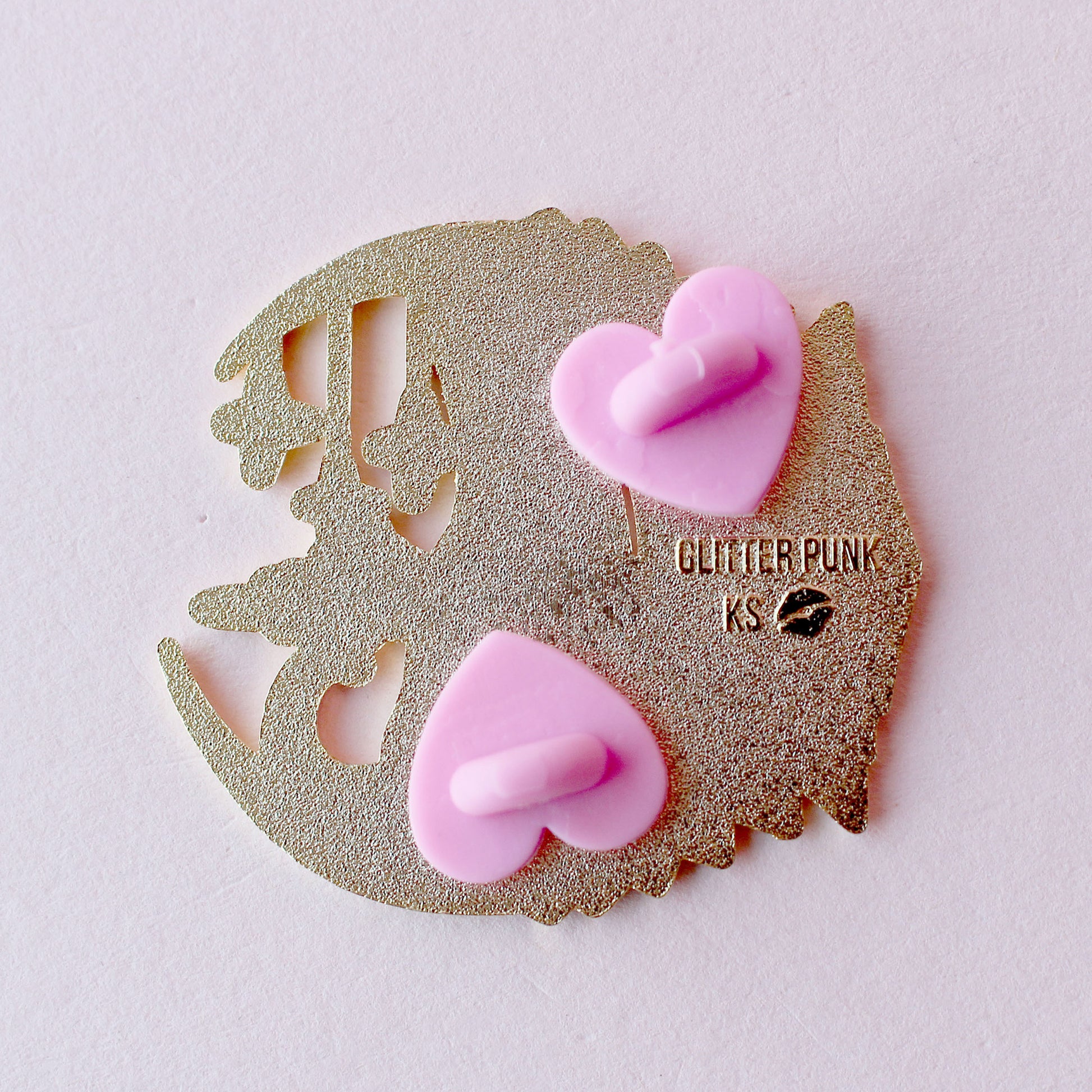 The pin is secured by two purple heart backs and comes on a special ‘Art Deco’ Glitter Punk backing card, making it perfect for a gift or to keep as a special treat for yourself.