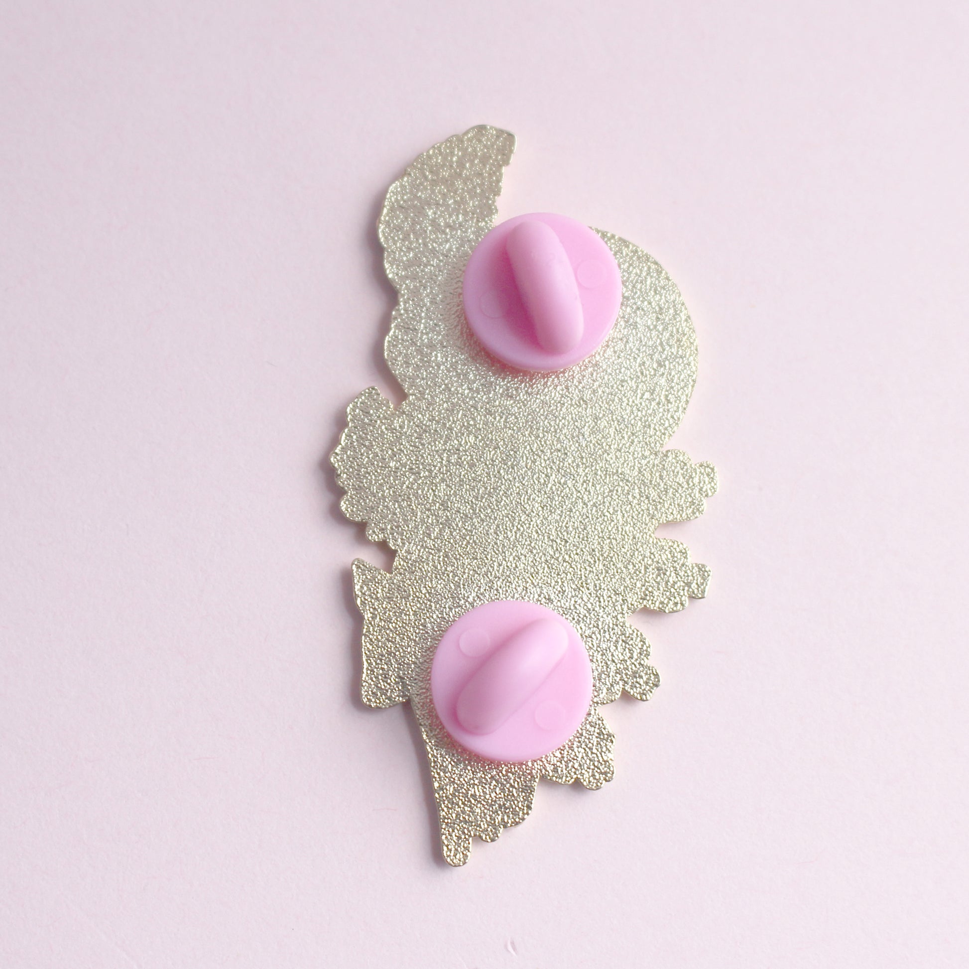 If you love the autumn season this fantastic Fall Fox is the pin for you! It features a black fox jumping over a glittery moon, surrounded by vibrant autumnal leaves. The pin comes with two pink pin backs and is secured on a Glitter Punk backing card.