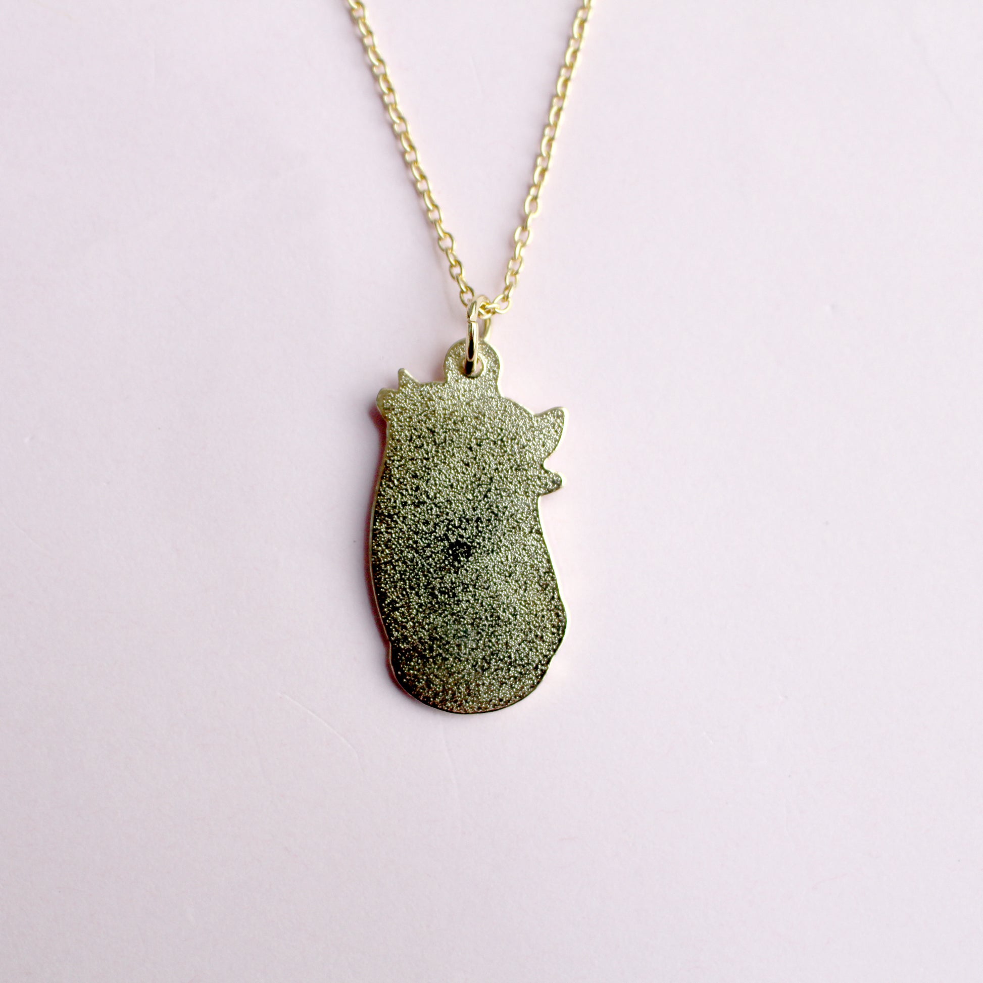 The Day & Night Hugging Cats design is now available as a necklace! Made from gold hard enamel, the charm measures 40x22mm and is hung from an 18" gold chain.