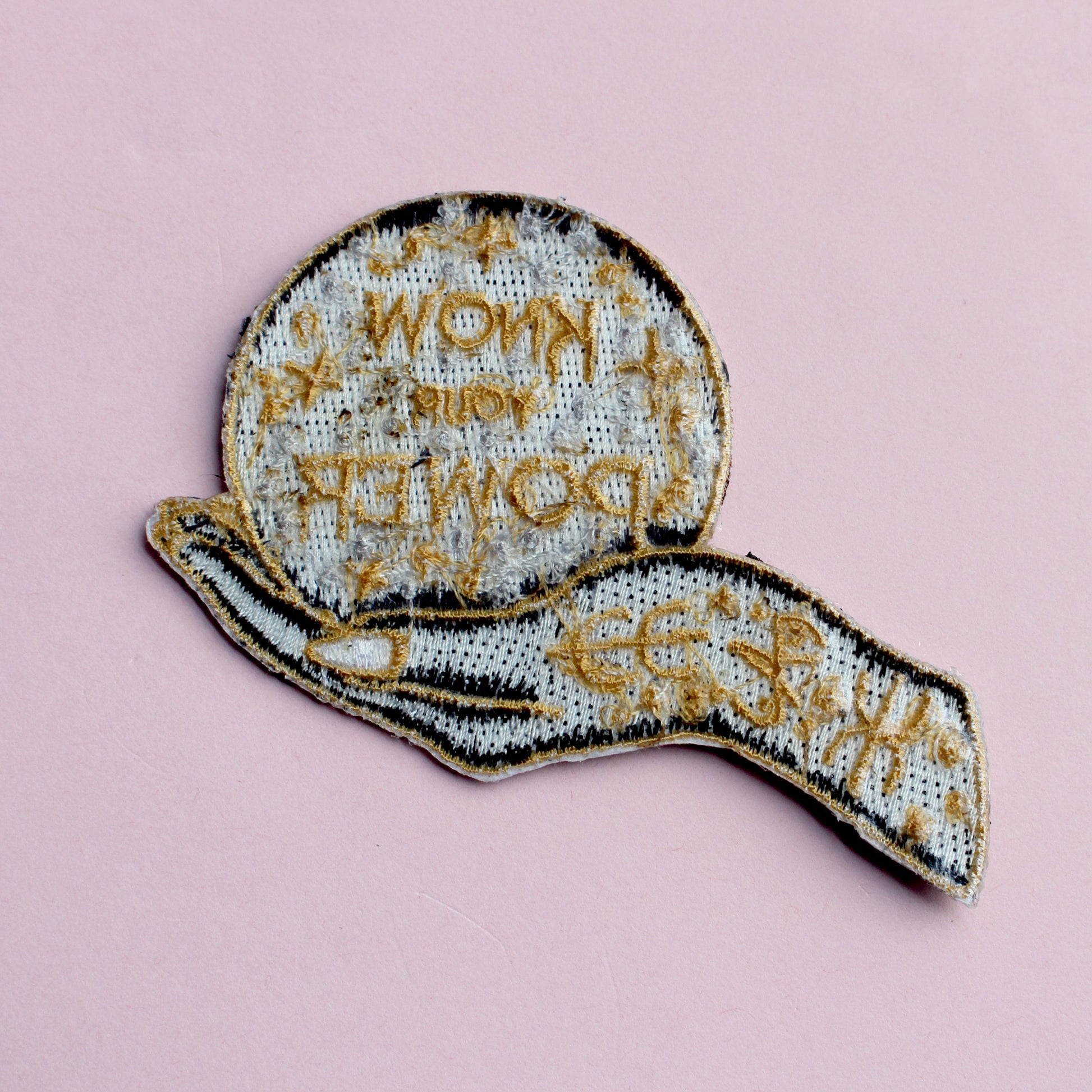 Embrace your inner witch with this fabulous witchy-feminist iron-on patch! Beautifully woven with black, white and gold threads, this fabulous 8.5cm patch will brighten up any coat, bag or hat!