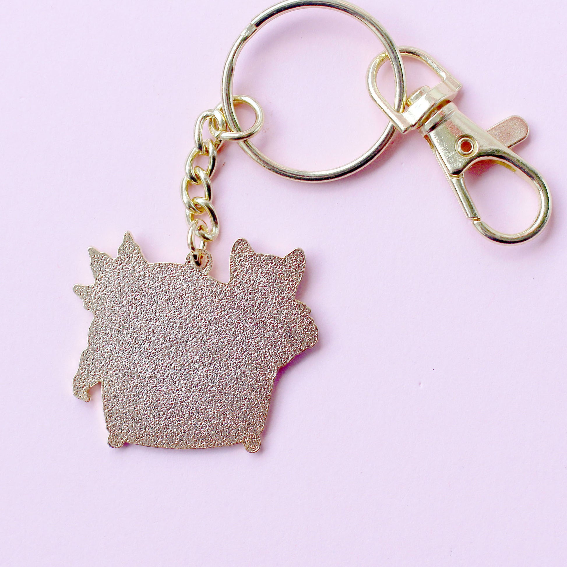 Any cat owner who has tried to keep their furry friend away from their best plants knows what a challenge it can be! This cute little key chain (originally a pin design) captures the moment the cat successfully snuck into the plants for a nap!