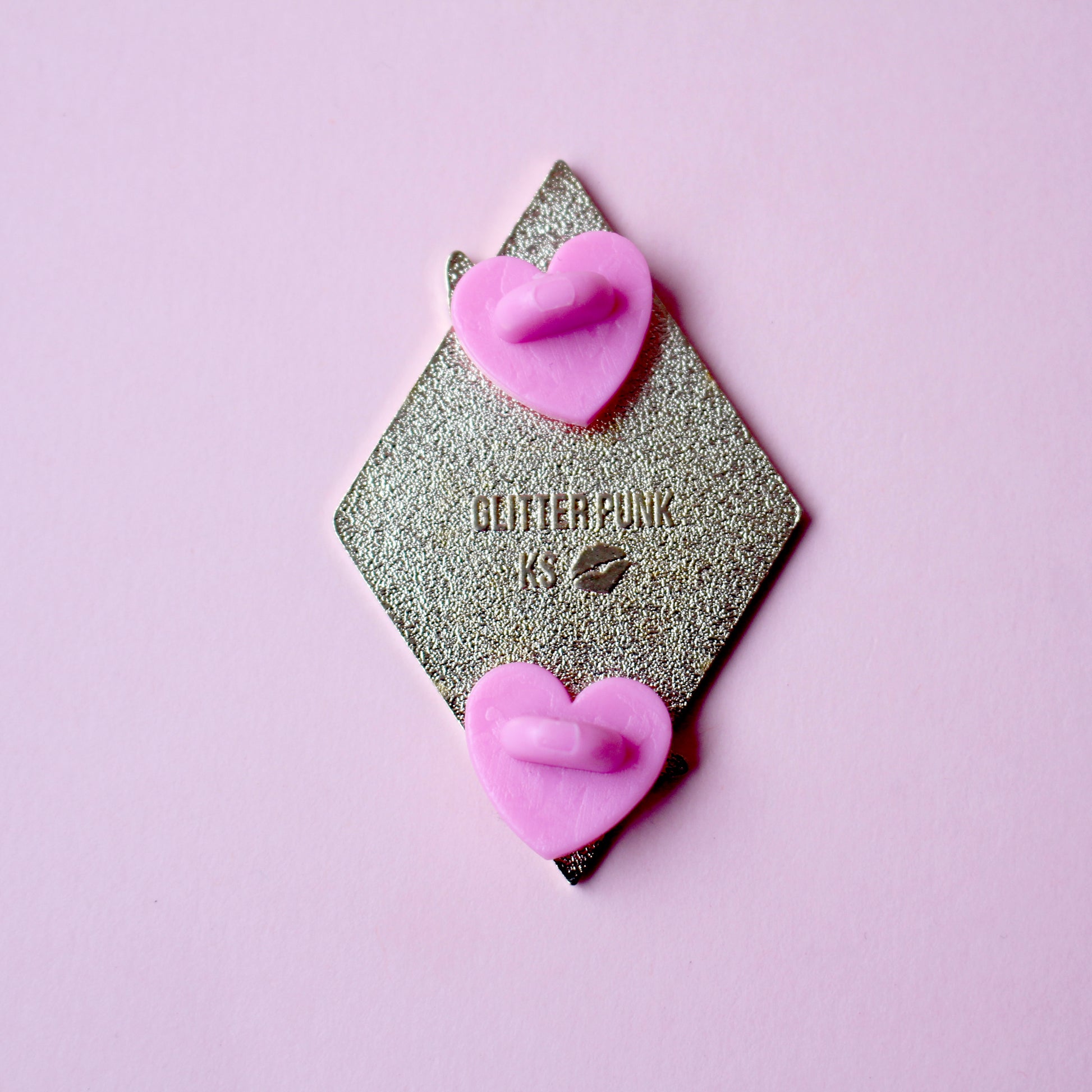 The pin is secured by two pink heart backs and comes on a special ‘Art Nouveau’ Glitter Punk backing card, making it perfect for a gift or to keep as a special treat for yourself.