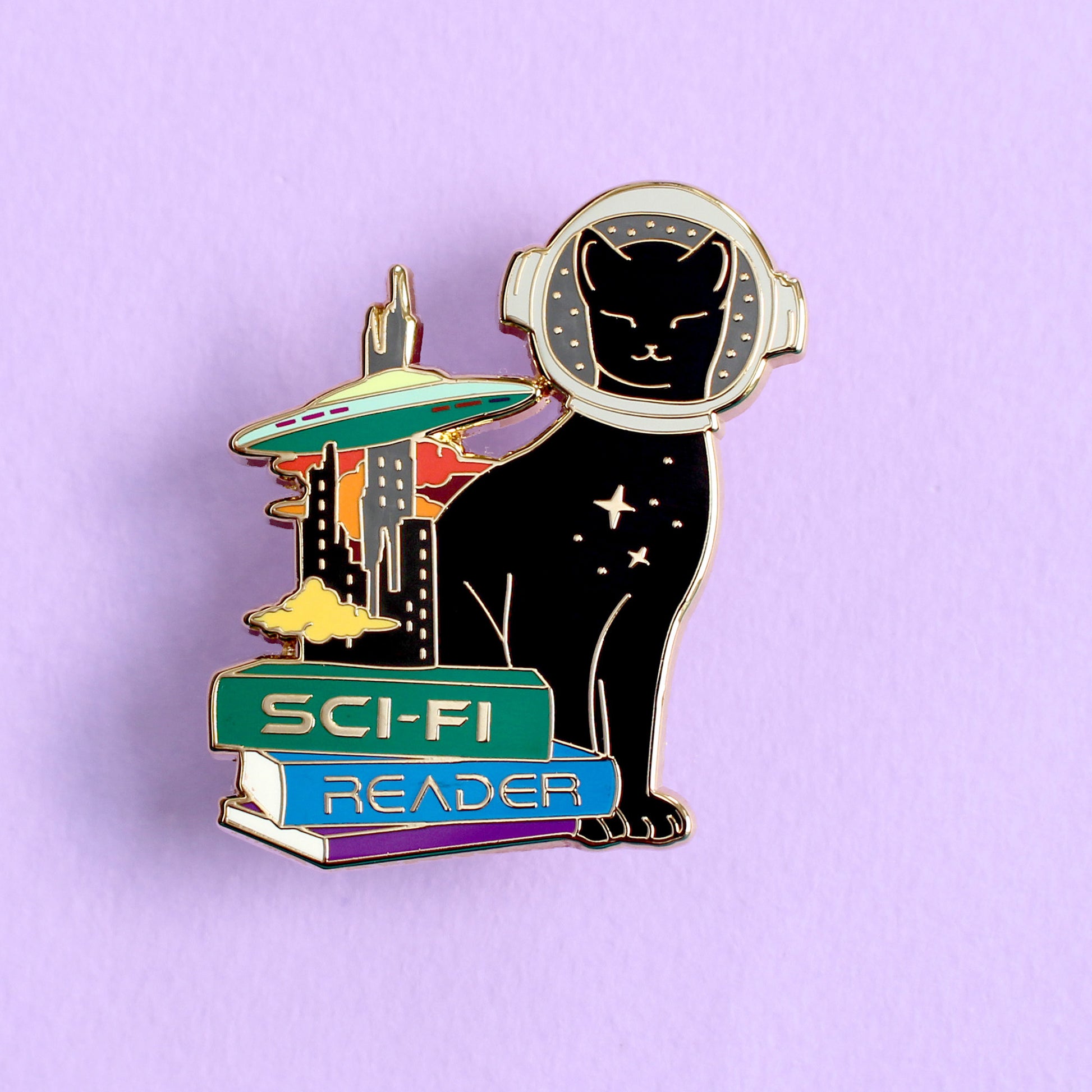 From alien worlds to distant futures, this SciFi Reader enamel pin is made for those who read beyond the stars.