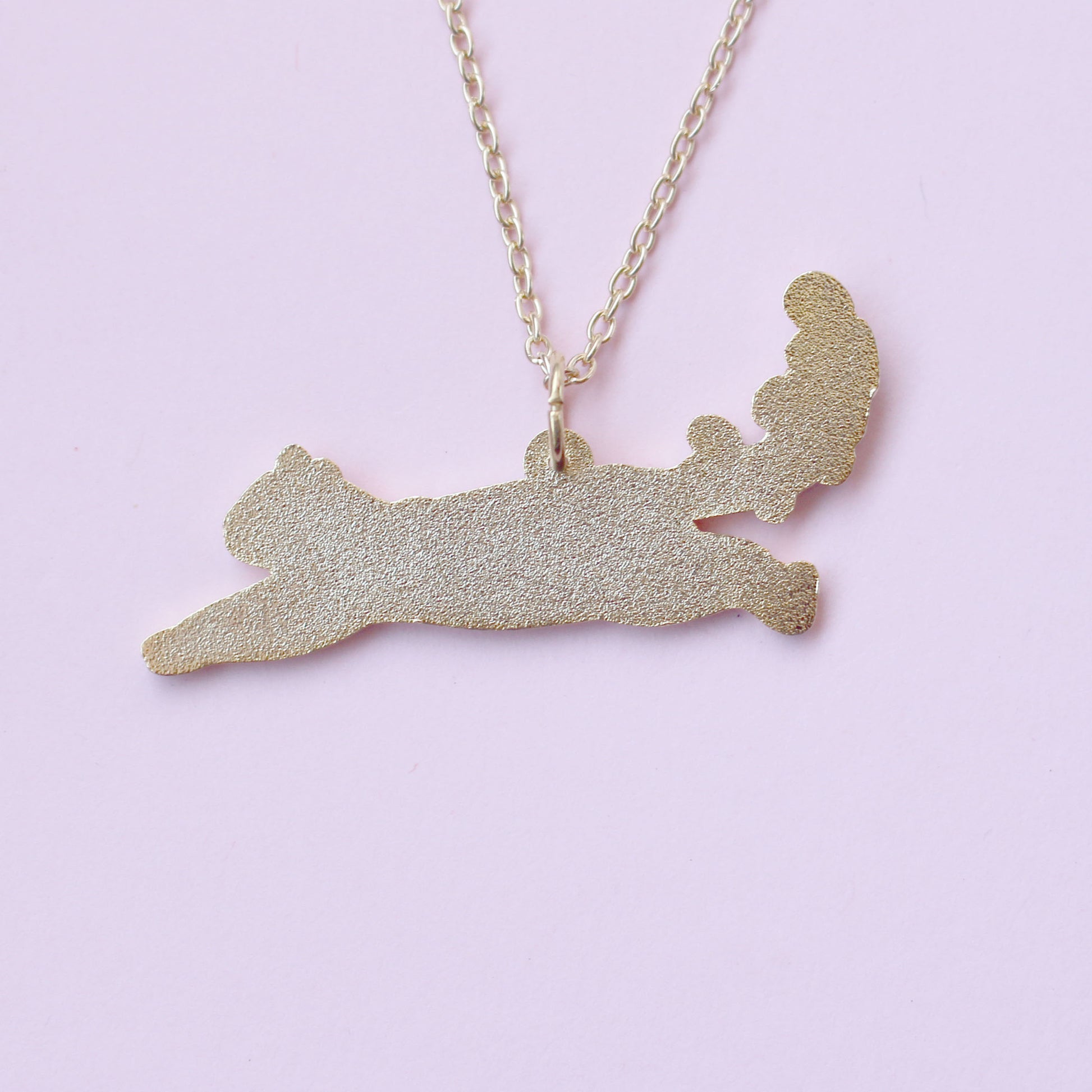 The Sea Cat is now available as a necklace! Featuring a jumping white cat with a glittery sea motif and a tail of foam, this fabulous fantasy necklace will be a real conversation starter!