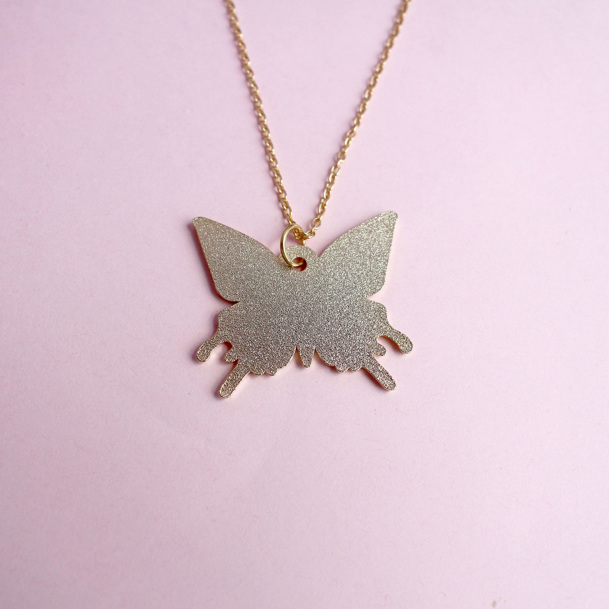 Made from gold hard enamel, the charm is 38mm wide and is hung from an 18” gold chain, presented in a white Glitter Punk jewellery box.